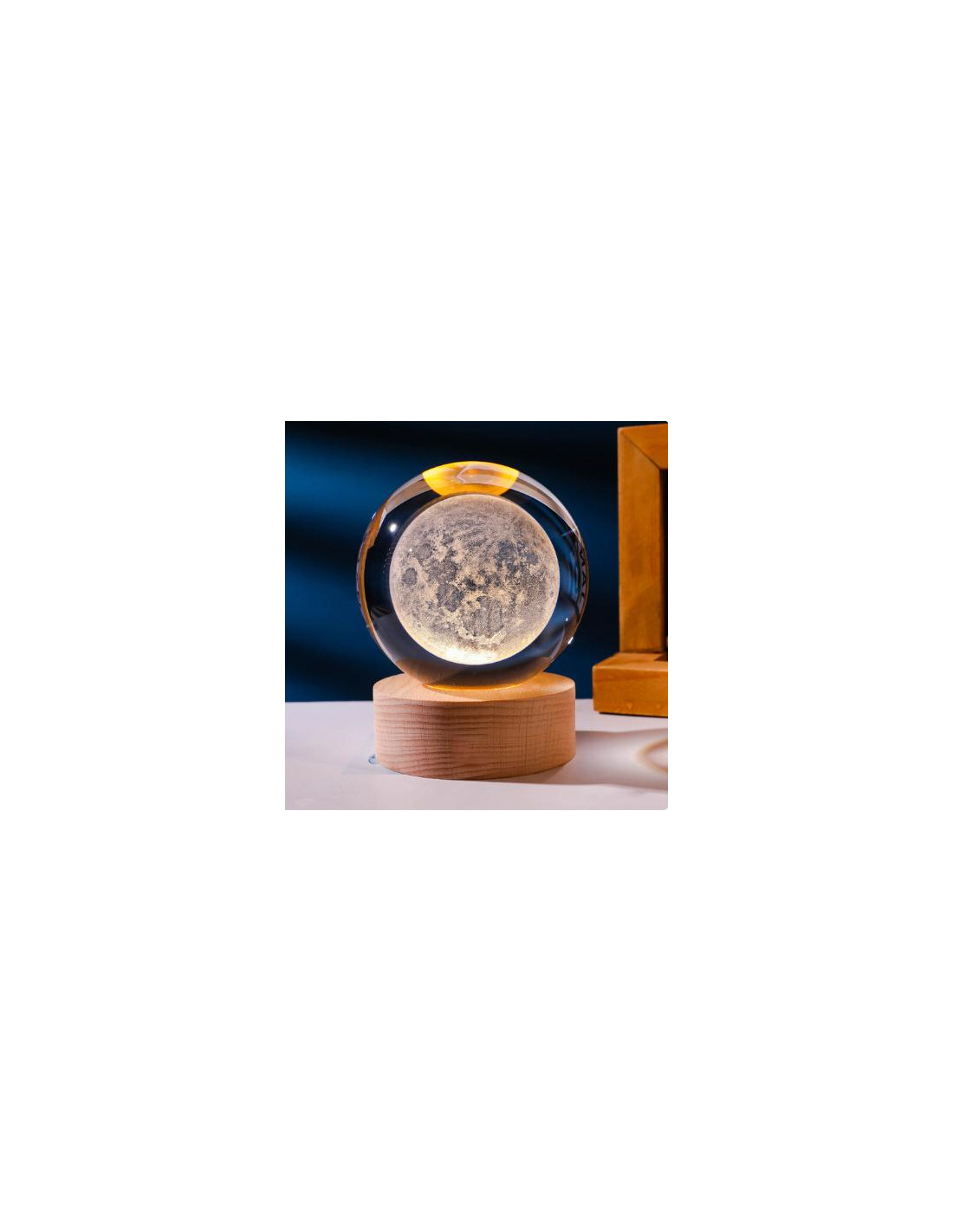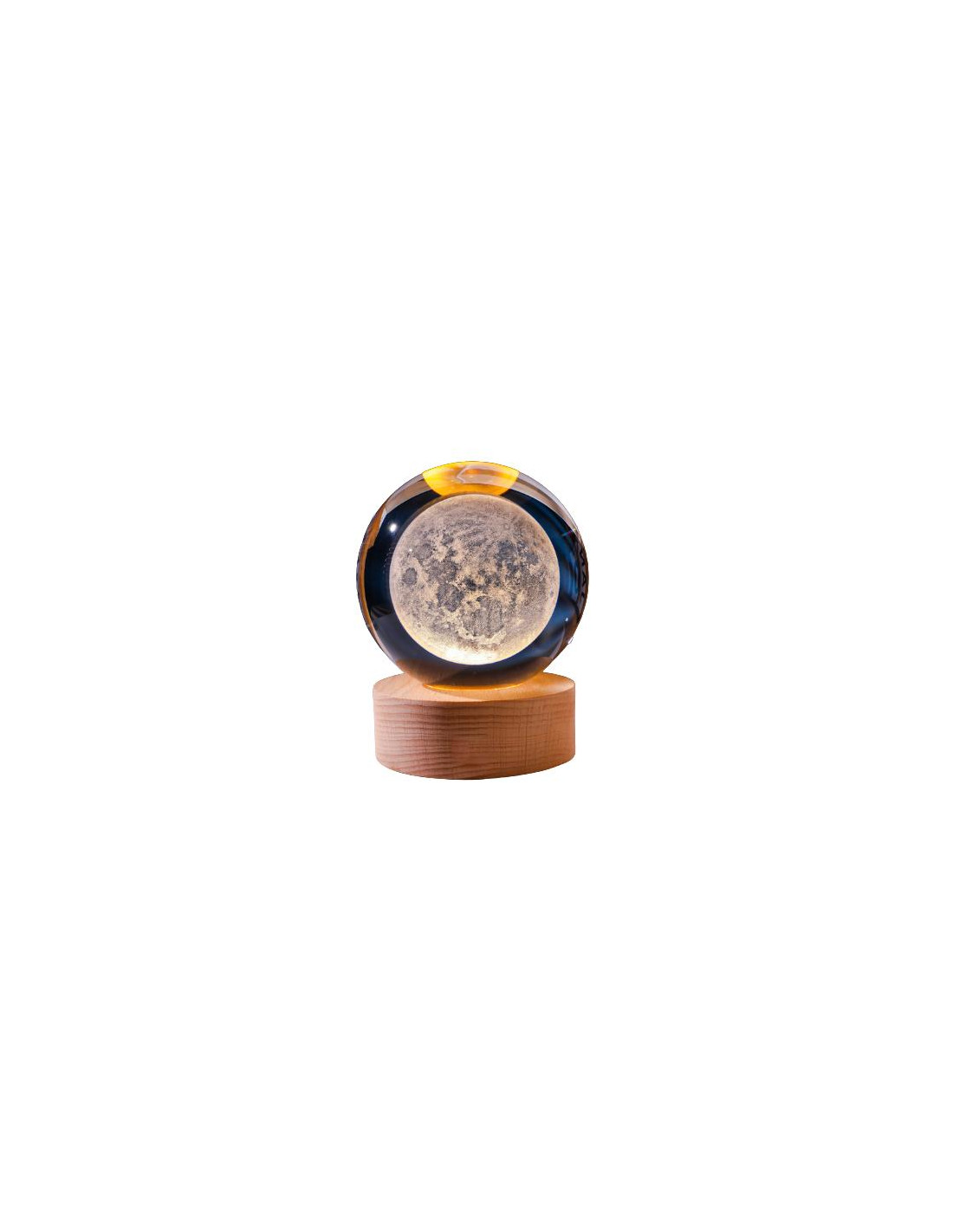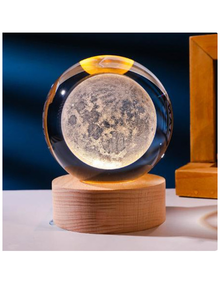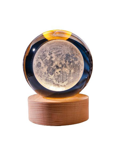 Podświetlana kula dekoracyjna na podstawie drewnianej KKS Księżyc LED USB