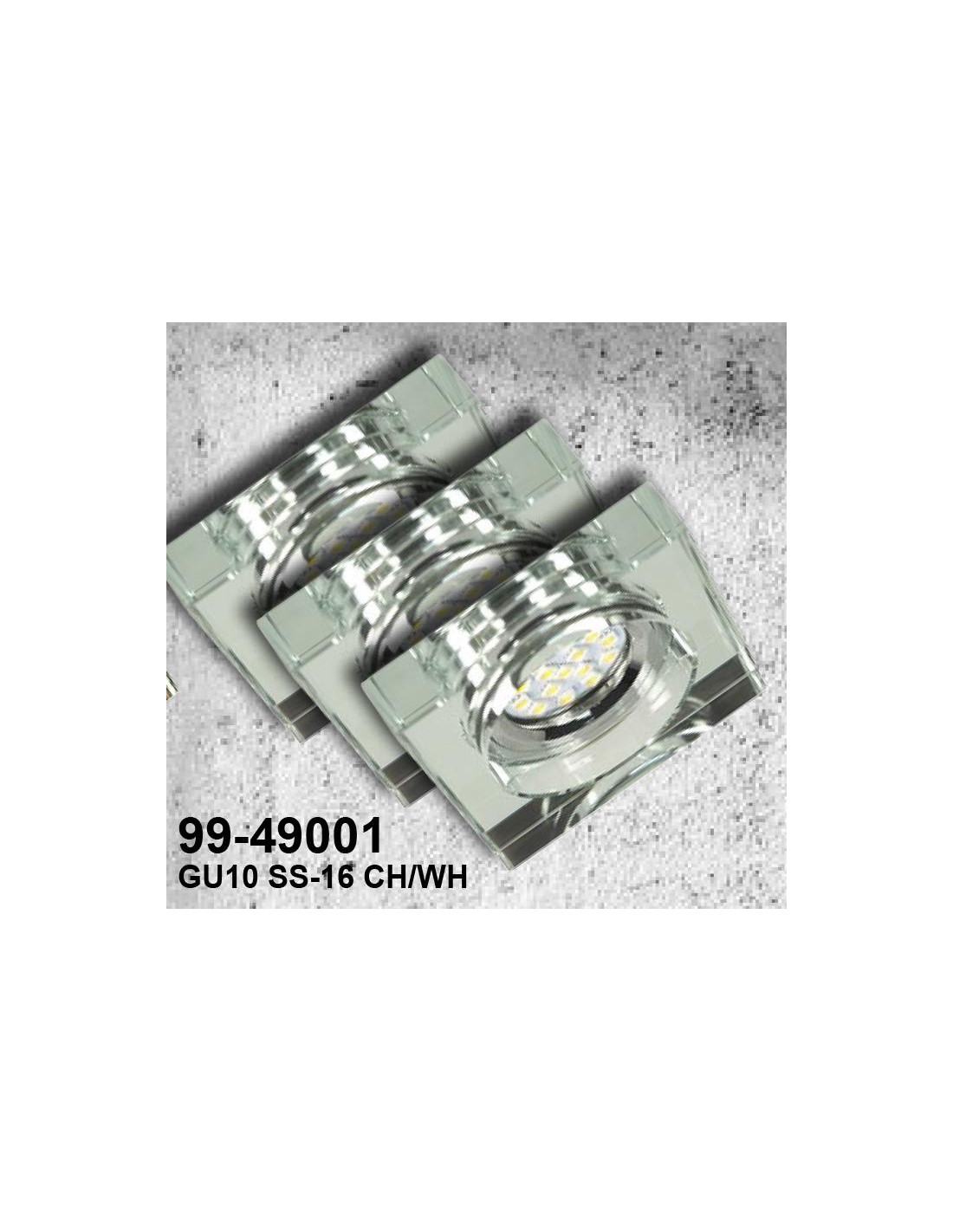 CANDELLUX ZESTAW TRZECH OPRAW SS-16 CH/WH 3X3W GU10 LED Z ŻARÓWKĄ LED CHROM OPR. STROP. STAŁA KWADRATOWA SZKŁO BEZBARWNE