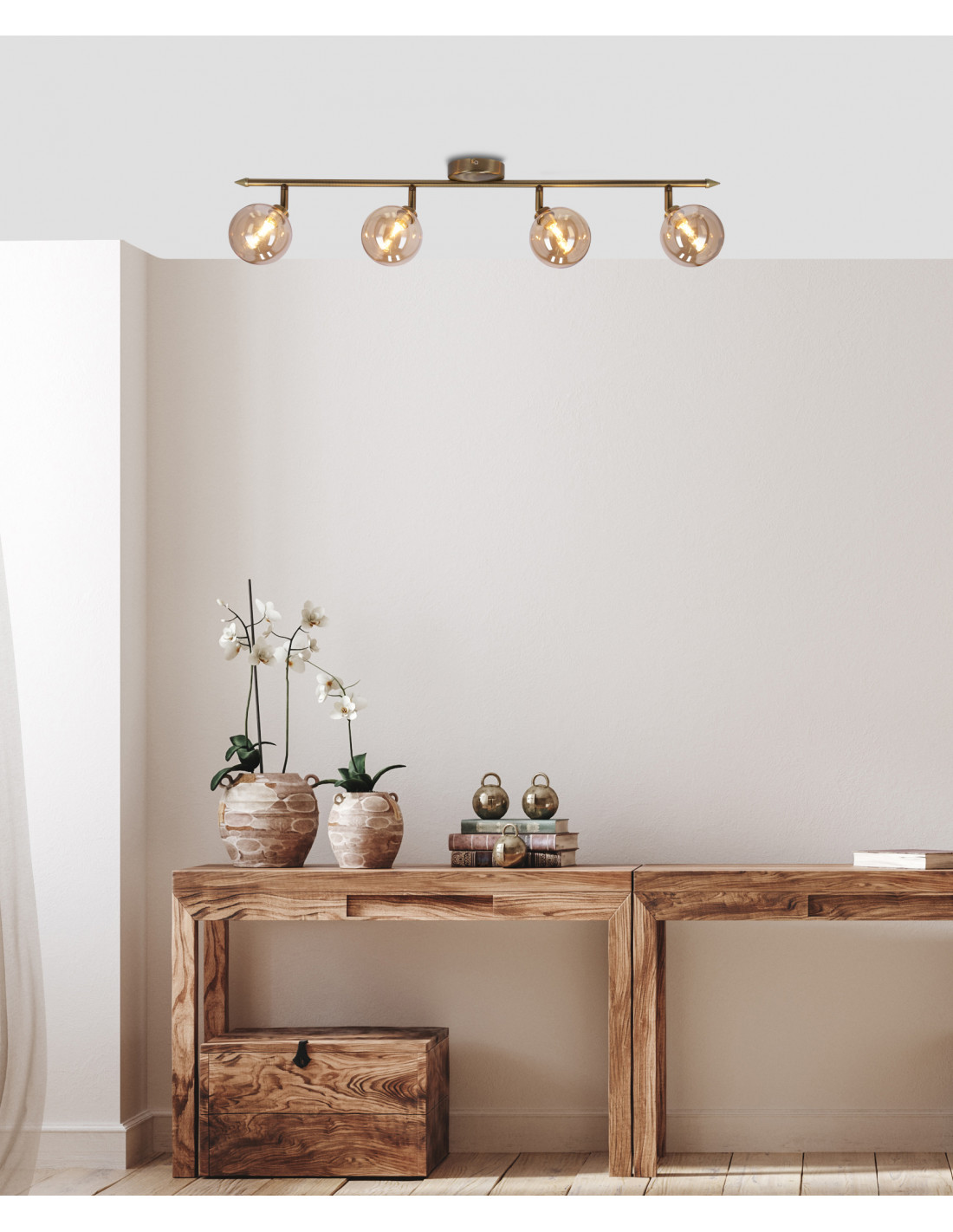 CANDELLUX Rodia lampa sufitowa listwa patynowy 4x40w g9 klosz bursztynowy 94-16560