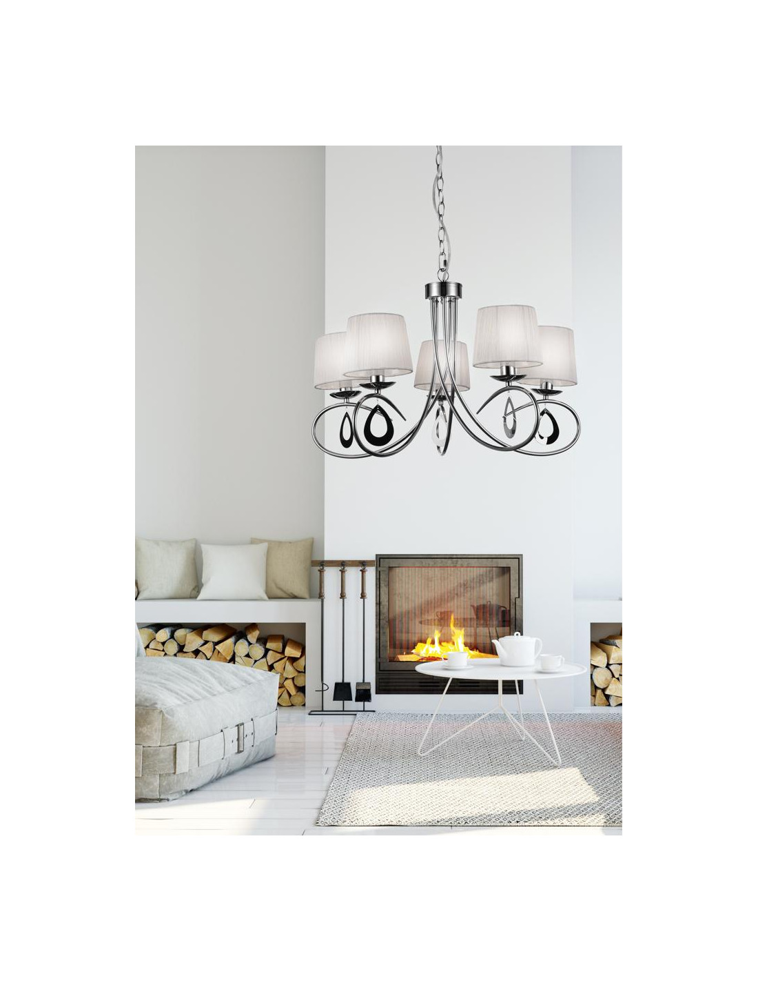 CANDELLUX ARNIKA LAMPA WISZĄCA 5X40W E14 CHROM / BIAŁY 35-21687