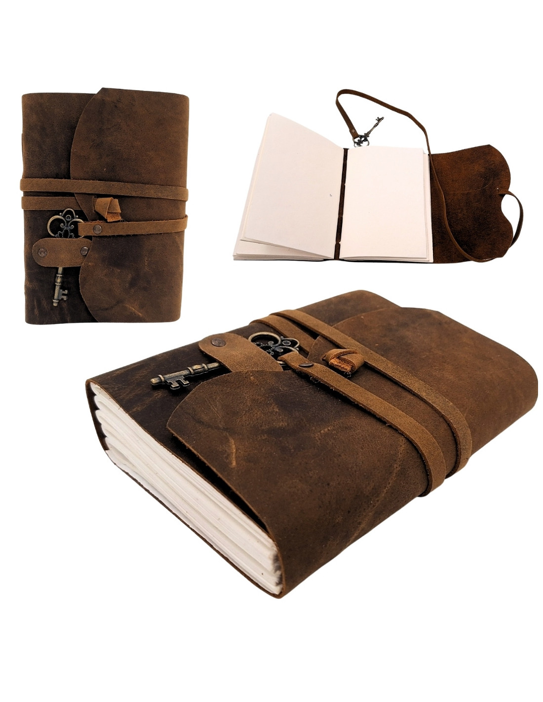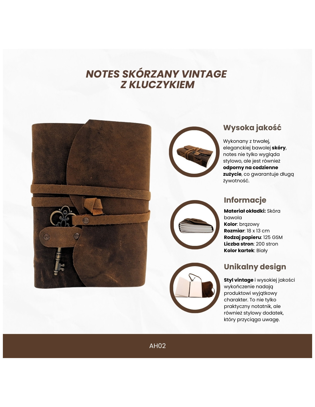 Notes Skórzany Retro z Kluczykiem i Paskiem 200 stron 18 x 13 cm - AH02